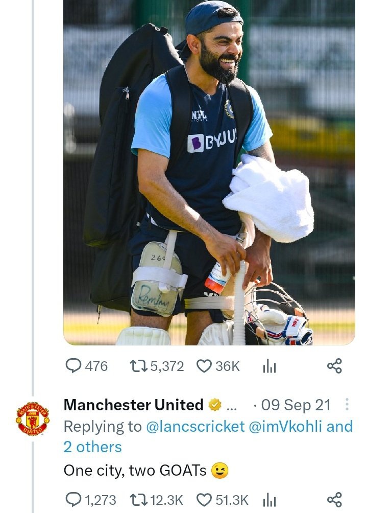 Manchester United on 'Virat Kohli and Cristiano Ronaldo'.