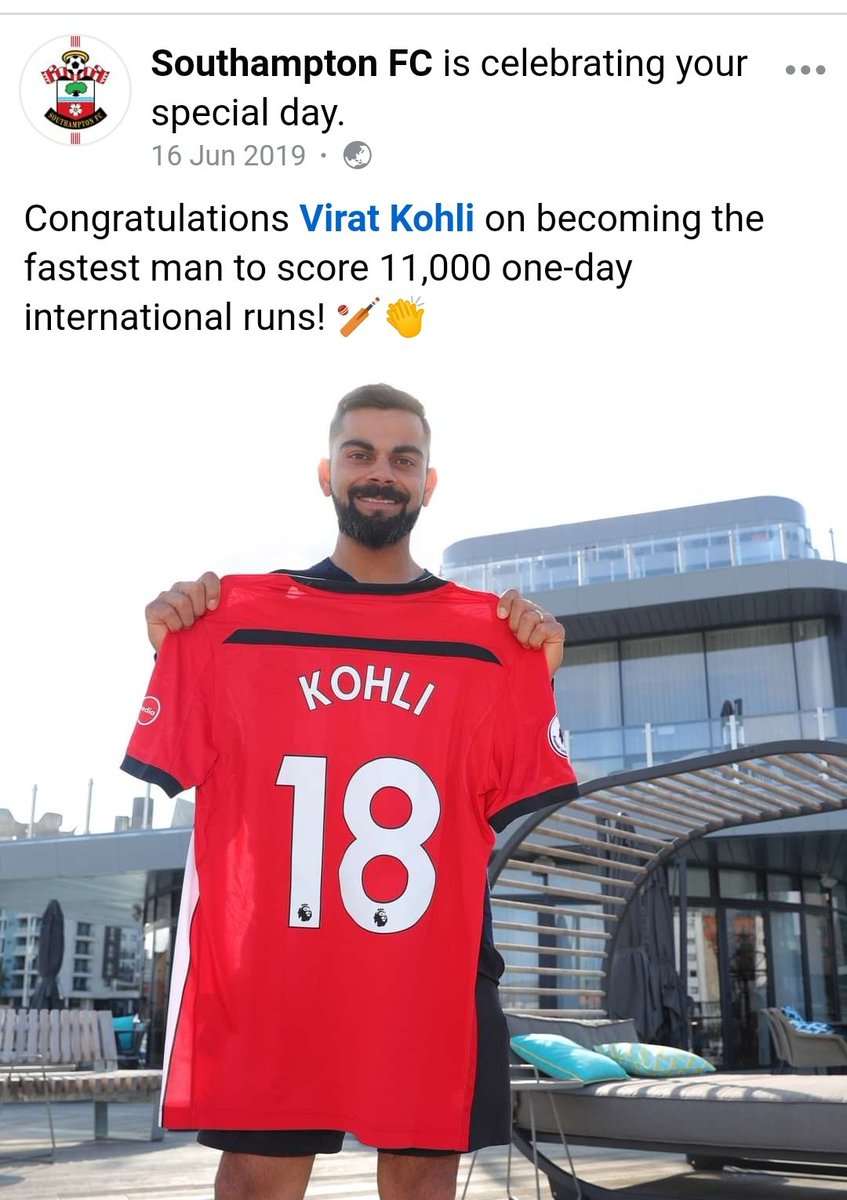 English Football Legend 'David Beckham' congratulated Virat Kohli for his 50th ODI century and posted an Instagram story.