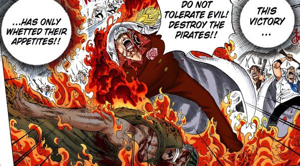 For Akainu, pirates are not just criminals, they are embodiments of evil that must be eradicated.