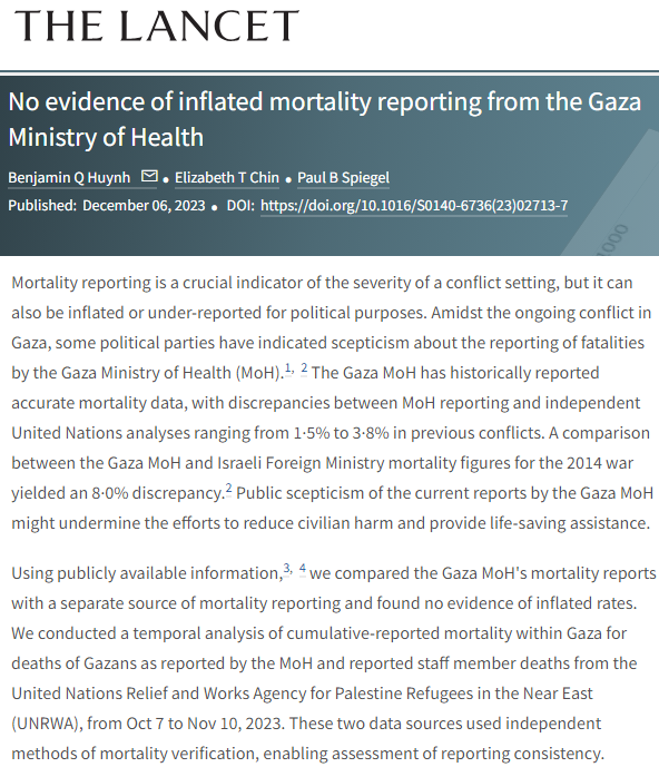 a few days ago one of the most prestigious medical journals in the world published their analysis of the death figures reported by the Gaza Health Ministry, which the Western media and political class, including Joe Biden, said provide false information. The numbers are accurate