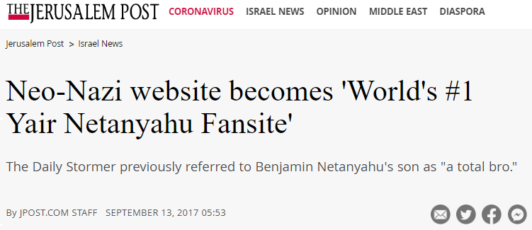 it is not just Netanyahu who loves advancing literal Nazi apologia and Holocaust revisionism as part of his rabid genocidal anti-Palestinian racist pathology, it's also his son, who is an open avowed Nazi and praised as such by Nazis the world over: