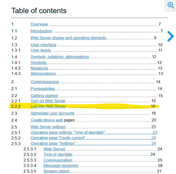 Let's look at it. Go to the Table of Contents, and look for the first thing that looks like logging into the device. Here we go: