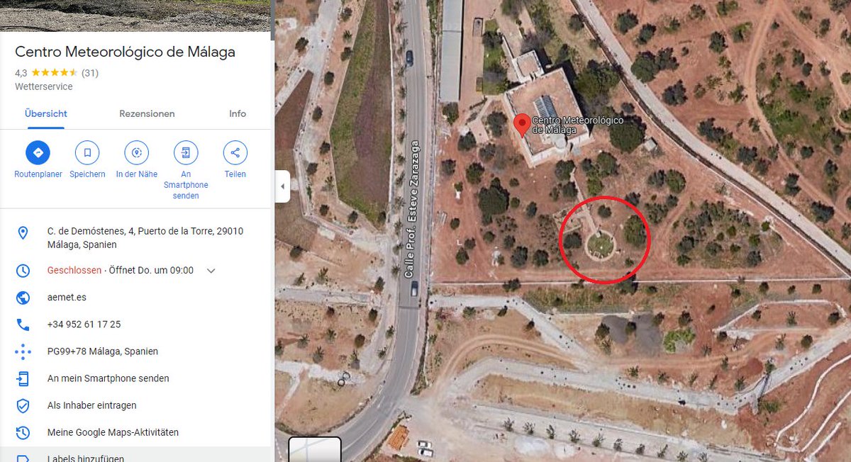 steht. Die Wetterstation am Flughafen von Malaga steht nicht zwischen den Bahnen, sondern am Südostende des Flughafens. Man bekommt bei Nordwestwind Luft aus asphaltierten Gegenden, bei den gestern herrschenden Winden mit Böen bis 35 km/h ist das allerdings weitgehend