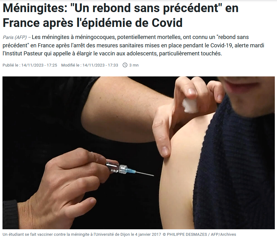 Cette fois avec le "rebond historique de méningites à Méningocoque"... Encore et toujours attribué à la fameuse "dette immunitaire"... france24.com/fr/info-en-con…