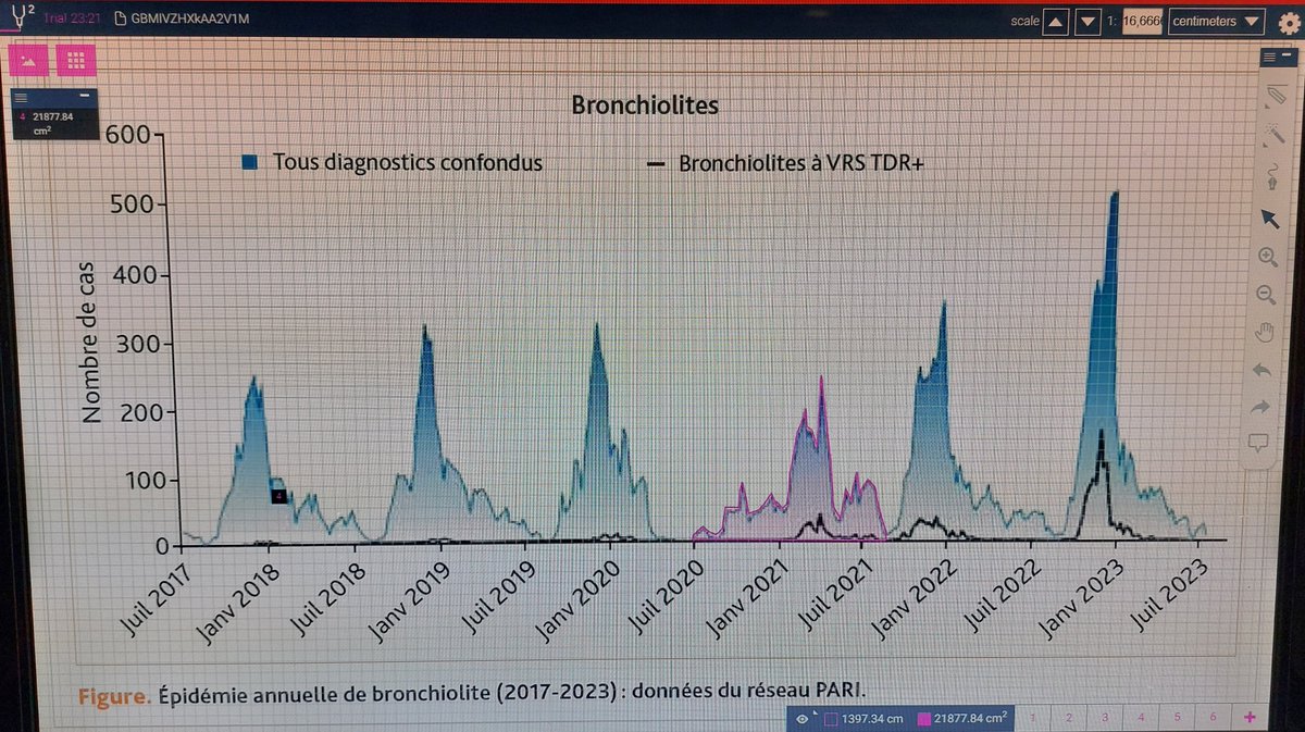 La vague 2019-2020 (à cheval sur la 1ère année de pandémie), correspond à une aire de 20774,03 UA, ce qui est ~la moyenne pré-pandémique et même supérieure à la vague de 2017-2018 (les pédiatres n'avaient pas parler de "dette immunitaire" à l'époque 😅)...