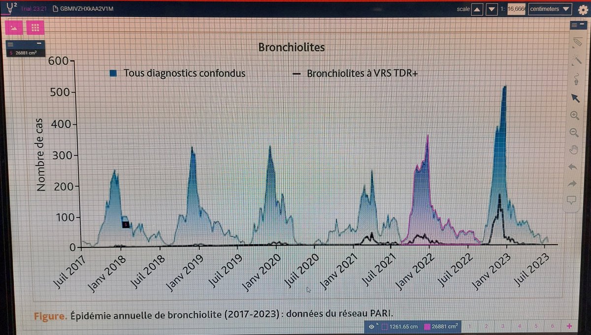 En 2022-2023, alors que le pool d'immunisés ne devrait pas avoir ↘️ d'après l'ampleur des vagues précédentes, on observe malgré tout une vague de bronchiolites d'une ampleur record : 32400 UA !!! 😅
