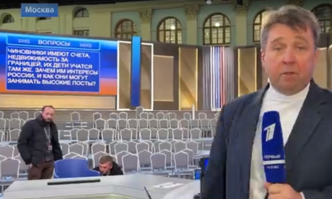 Putin is holding his annual televised Q&A today, and people have been invited to send questions via text, to be displayed on big screens behind him. Apparently, whoever is filtering them has let some uncomfortable ones slip through.