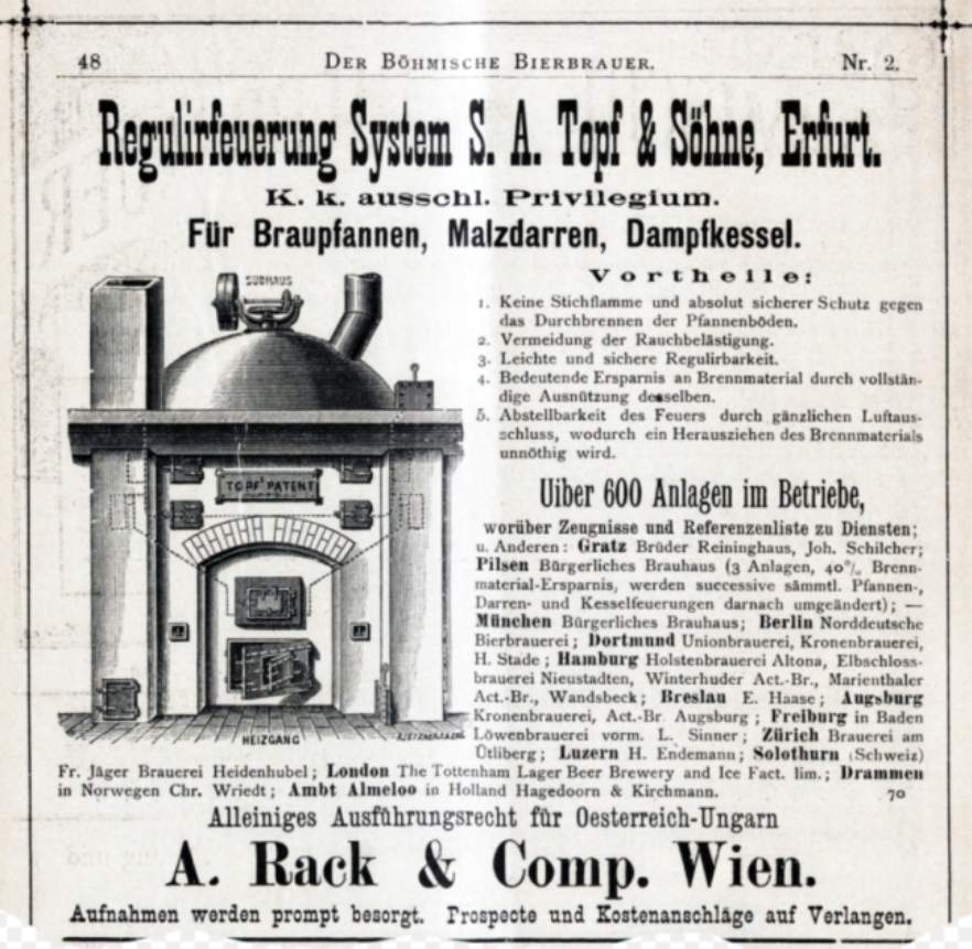 Quella ditta era la J.A. Topf und Söhne, fondata nel 1878 da A. Topf, inizialmente specializzata in sistemi di riscaldamento e impianti per la lavorazione di birra e malto.