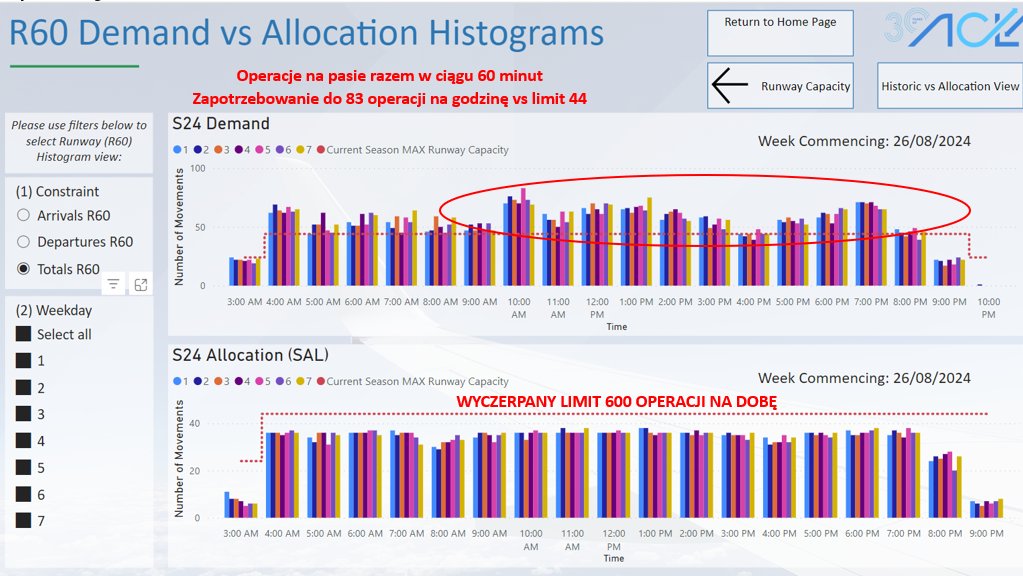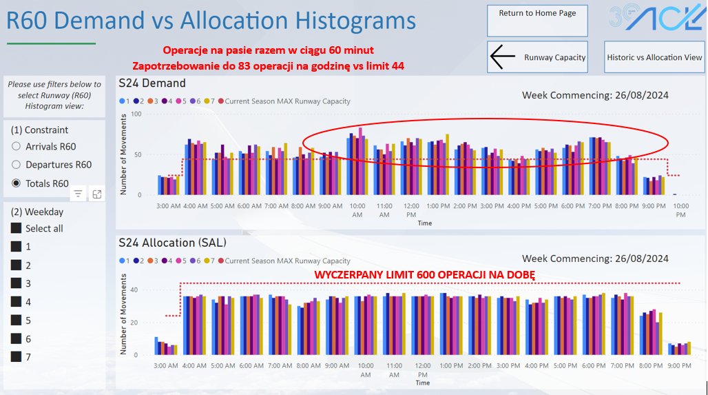 Po koordynacji w sezonie Lato 2024 obserwować będziemy średnio 36 operacji na godzinę, co wypełnia w 100% limit środowiskowy 600 operacji na dobę