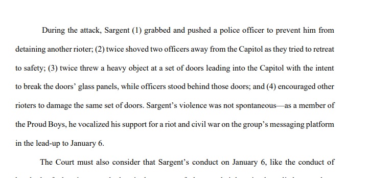 THIS MORNING: Feds seek 46 months prison in Jan 6 case of Anthony Sargent, arguing he "twice shoved 2 officers away from the Capitol as they tried to retreat to safety.. twice threw a heavy object at a set of doors leading into the Capitol w/ the intent to break the doors glass"
