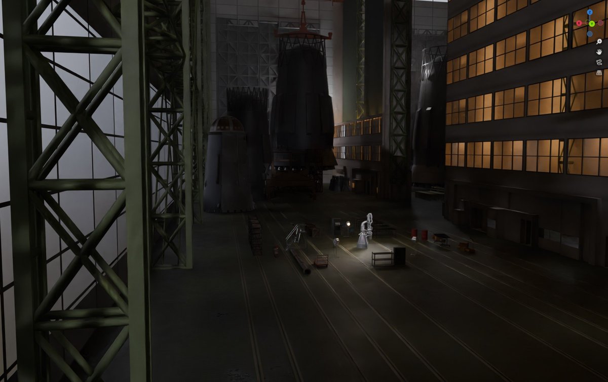 29/10/2024: je converge sur la disposition dans le MIK où le moteur est présenté. J'ai passé des heures et des heures à reconstruire l'intérieur et positionner les différents objets de façon crédible sur leur atelier, aux vraies places.