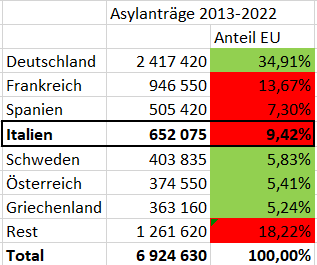 🇩🇪 steht bei etwa 300.000 Anträge im Jahr 2023. Zum Vergleich: 2015 waren es 750.000.