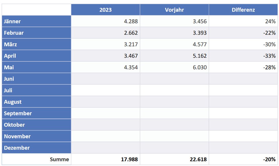Einbruch bei Antragszahlen, antragsschwächster Monat im Jahr 2023.