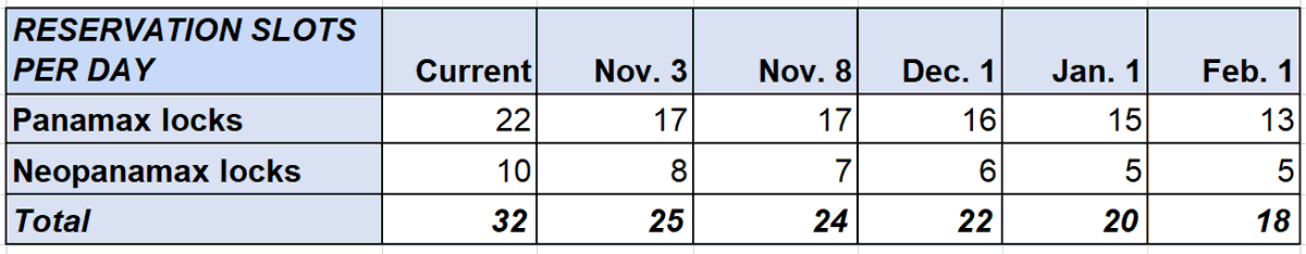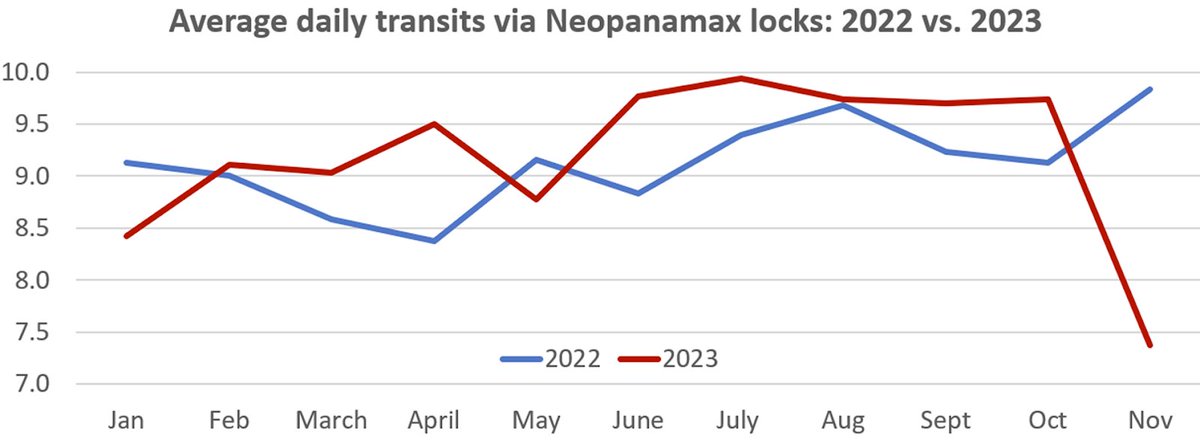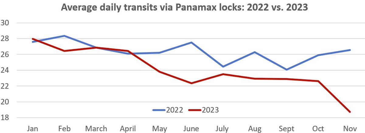 3/The low water in the Panama Canal is reducing the number of transits in half.