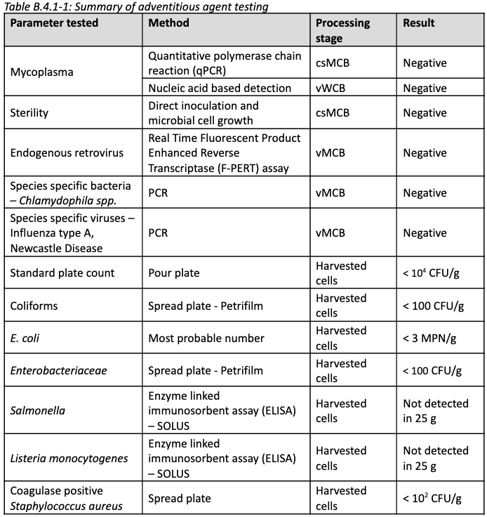 Safety: The cells are tested for pathogens prior to banking, as well as common foodborne contaminants such as E. coli and Salmonella following cell culture