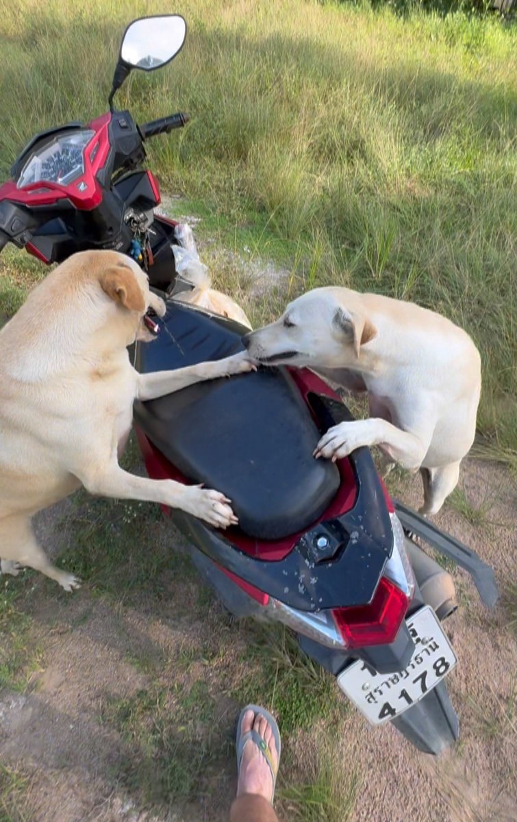 I feed them away from the toad and also I have to do it fast. They started “guarding and protecting” me by chasing other bikes away. I’m their food source.