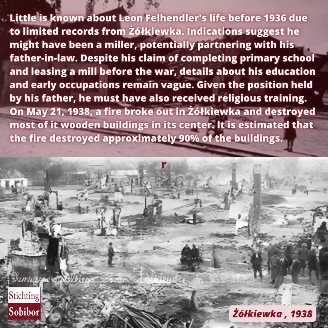 Leon Felhendler's early life shrouded in mystery due to limited Żółkiewka records. Possible miller, just as his father-in-law. Education and pre-war work unclear. Likely received religious training from his rabbi father. 3/8