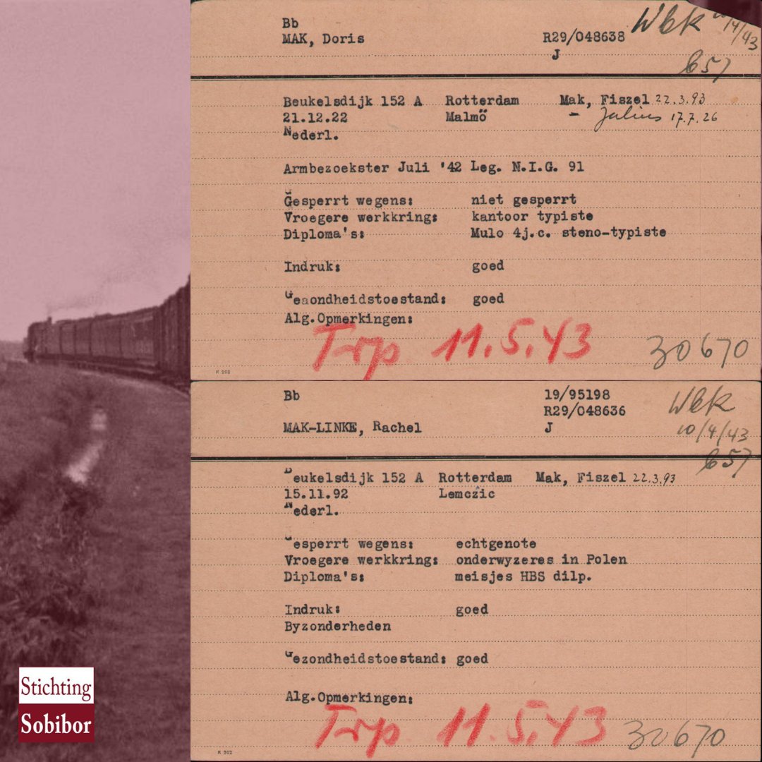 For a month the Mak family stayed in Westerbork. On May 11, 1943, Fiszel, Rachel, Doris & Julius were deported to the Sobibor death camp. Upon arrival, Doris and her mother Rachel were murdered in Lager III. Fiszel and his son Julius were selected as Arbeitsjude. 4/5