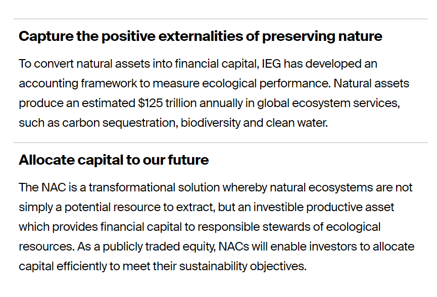 It's very easy to see how the Natural Asset Companies model fits right into this plan of getting rich off total control (and depopulation, frankly) if you read some of the publications that tout it. It feels so obviously scammy. hklaw.com/en/insights/pu…