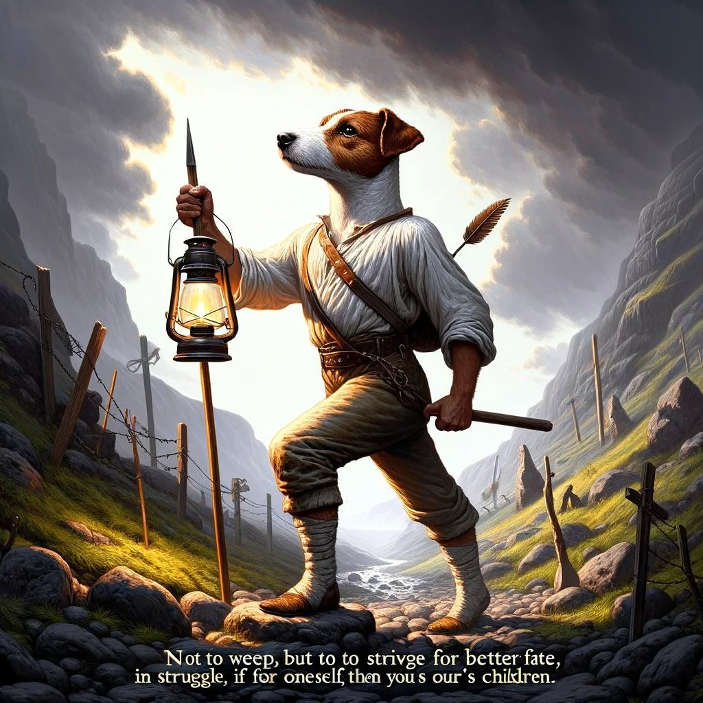 Тому, пані та панове, тред картинок, які згенеровані ШІ на основі цитат українських класиків, але головний герой - Пес Патрон