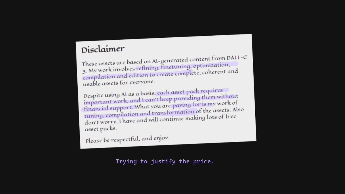 AI users are often in it for the money, making some quick cash. They don't care for the craft or contributing to the community. That means they'll often sell a lot of packs for little money, a few cents or a dollar - anything but free