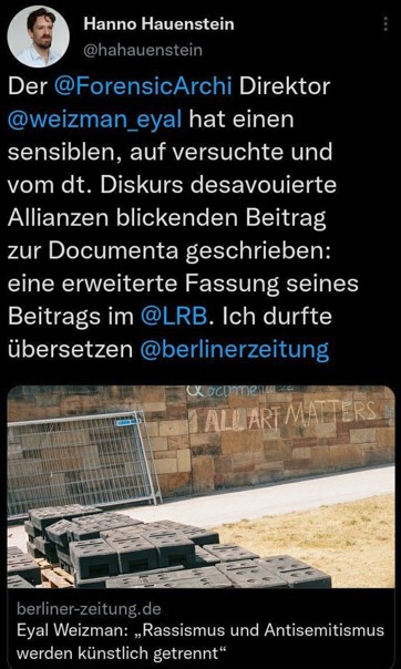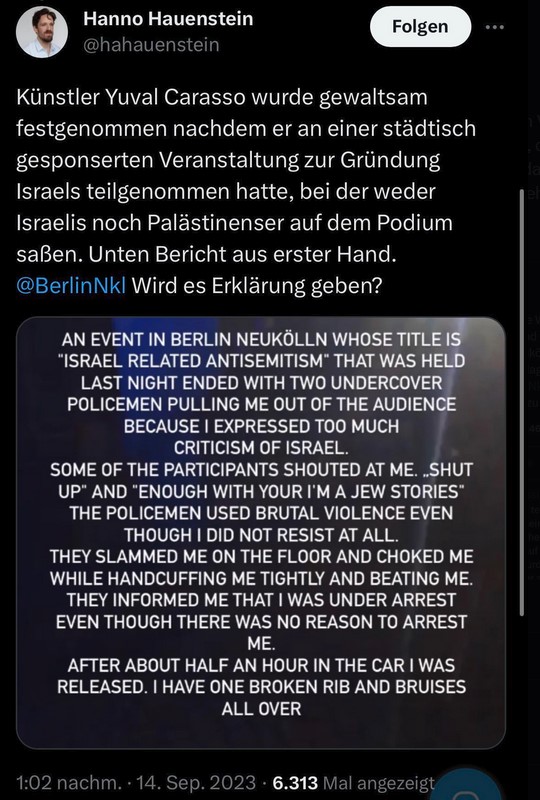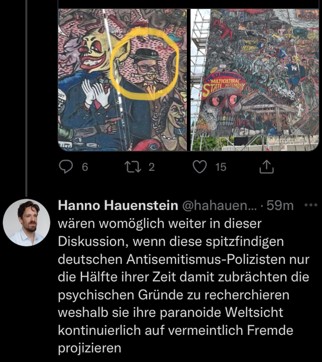 Nach dem größten antisemitischen Massenmord seit 1945 am 7.10. blieb Hauenstein vorerst stumm, wie die meisten postkolonialen Linken. Inzwischen nicht mehr Redakteur bei der "Berliner Zeitung" veröffentlicht er dann in der linken Zeitung "Analyse & Kritik" einen Artikel, der...