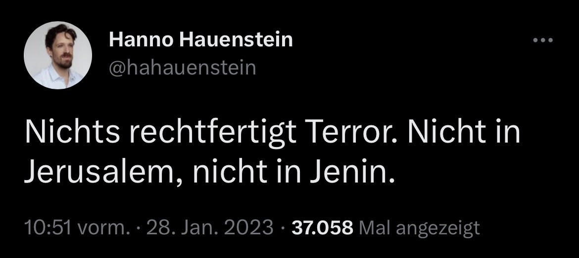 Völlig demaskiert hat sich Hauenstein ab dem Januar 2023, was seine stetig zunehmende Radikalisierung belegt. Nach tödlichen antisemitischen Terroattacken in Israel starten die israelischen Behörden einen Antiterroreinsatz in Jenin, um die Terroristen zu verhaften.