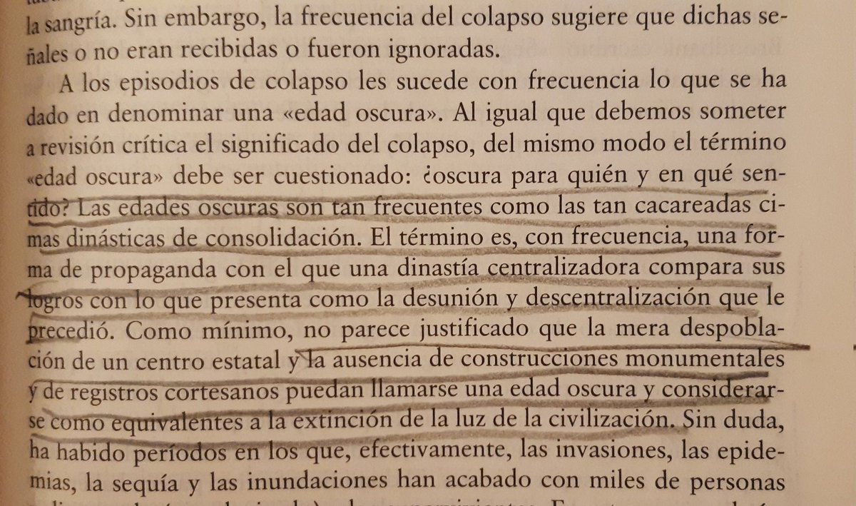 Era una forma frágil, variable. Lo que tradicionalmente se han conocido como épocas oscuras (tras el debido colapso) era la normalidad.