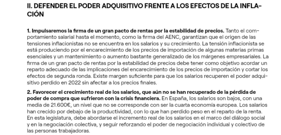 1. Se toma la relación trabajador-empresario no como una contradicción a superar, sino como algo que puede y debe ser armónico. 2. No se puede hablar de defender el poder adquisitivo a la vez que se pretende un pacto de rentas. Un pacto de rentas es por definición una rendición+