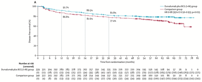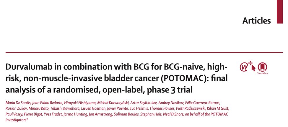 3/ POTOMAC (Phase III): adding 1 year of durvalumab to BCG induction + maintenance In BCG-naive high-risk NMIBC significantly improved DFS vs BCG alone. 32% risk reduction for recurrence or death (HR 0.68) at ~5-yr f/u. Manageable safety profile. Supports IO + BCG as a potential new standard in high-risk NMIBC.