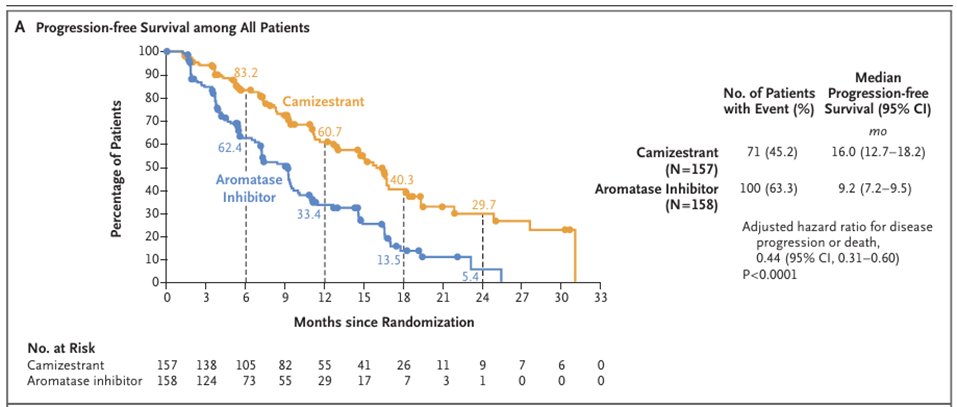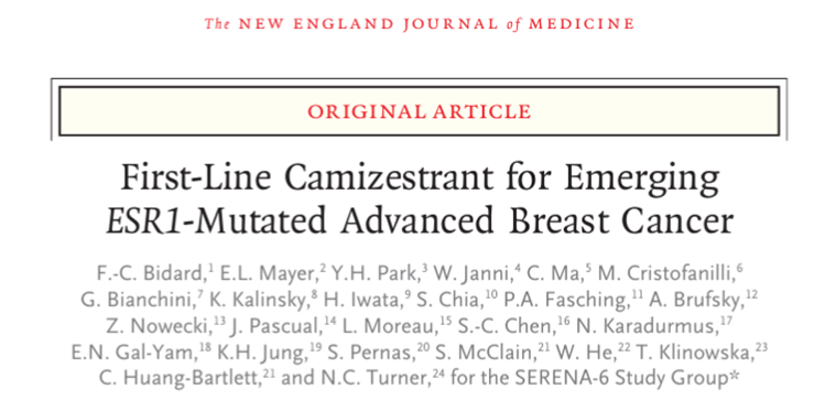 3/ #SERENA6 is the first Phase III trial to use a ctDNA-guided approach to tackle endocrine resistance: In ER+/HER2– metastatic breast cancer, early switch to Camizestrant upon ctDNA-detected ESR1 mutation markedly delayed progression. PFS 16.0 vs 9.2 m (HR 0.44). QoL decline was delayed and toxicity remained low. Glad to see our own investigator-extraordinaire @elmayerm @DanaFarber 2nd author. Also #ASCO2025 Plenary