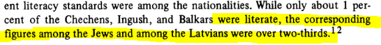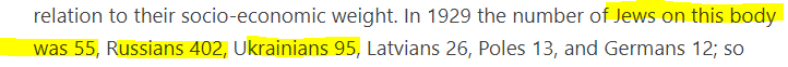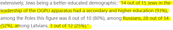 While being over-represented relative to their population, Jews were subjected to the HIGHEST standard to be accepted into leadership: 93% of them had secondary or higher education, compared to the meager 52% among Russians and Latvians.