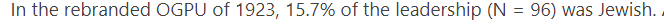 Despite the fact that nearly 70% of the Jewish population was literate, compared to only 40% of Russians, Jews still made up a meager 15% of the OGPU leadership at this time.