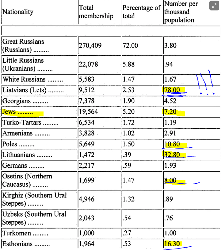 To be sure, Jews were not an entirely negligible presence in the party. Yet as we have shown, there was still WAY more Latvian and other Baltic over-representation in the party.