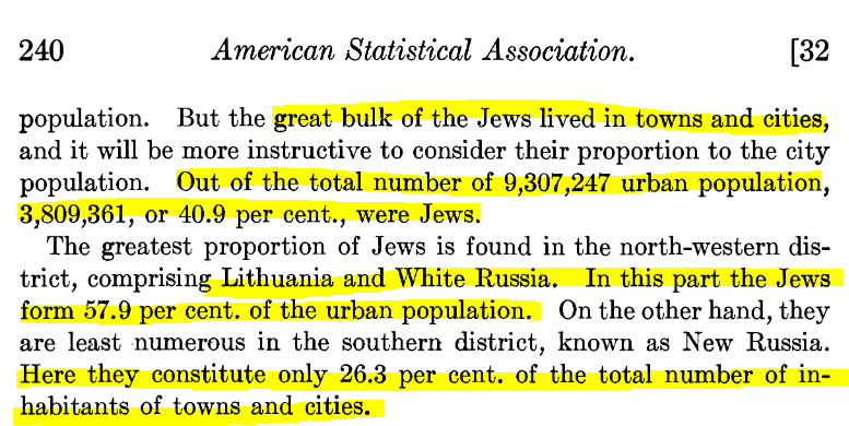 In the Western part of the Russian Empire, Jews made up as much as 40% of the TOTAL urban population!