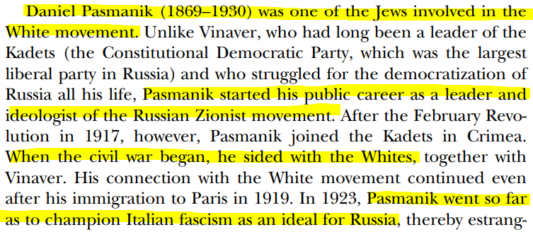 One of the most prominent Zionist leaders in Russia, Danlil Pasmanik, not only supported the white army, but championed Fascist ideology before anyone even knew who Hitler was! “BASED Right-Wing” saving the West from Bolshevism, amirite fellow anti-Communists?!!!111