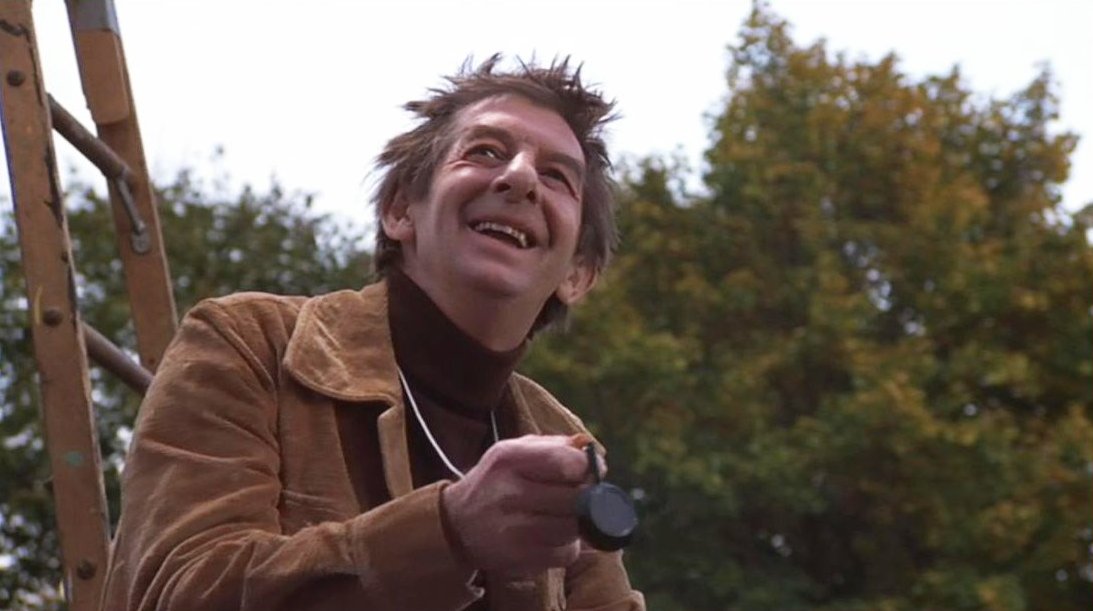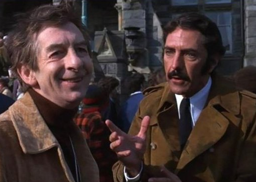 William Peter Blatty has a cameo in the film as a movie producer. We see him (below, right) discussing a scene with Burke Dennings on the set of Chris' film.