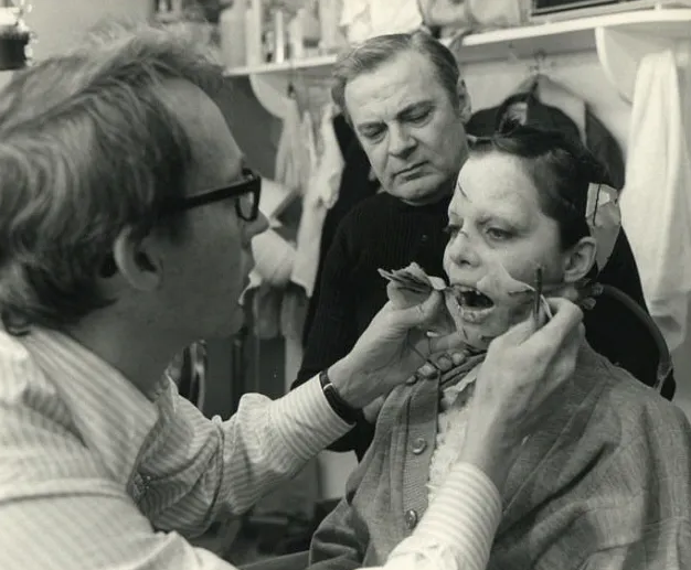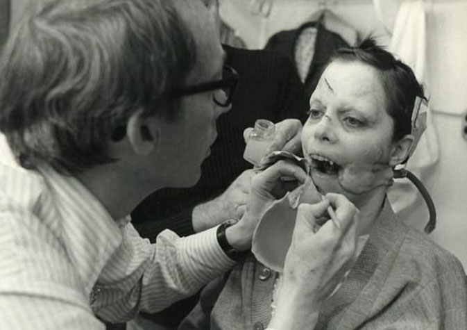 Von Sydow was only 44 years old at the time and it took many hours in the chair with makeup artist Dick Smith to age Von Sydow 30 years. Von Sydow’s daily 3 hour regime was achieved with a mix of stipple and liquid latex.
