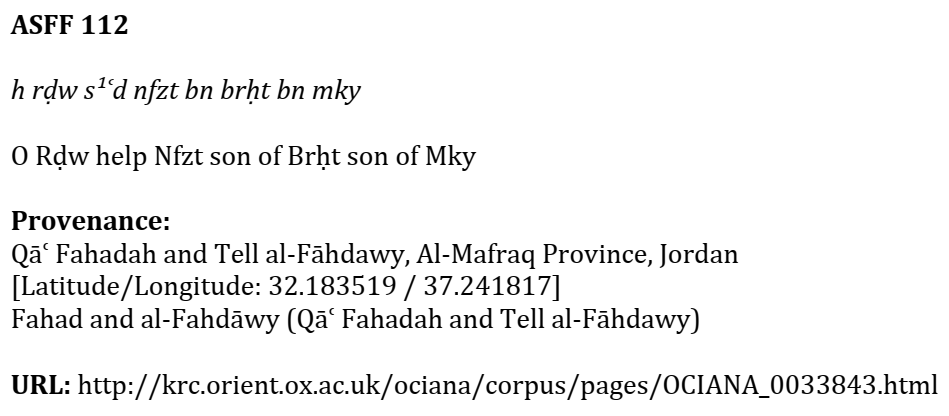 The names of men and women such as โMky/Makkฤซโ and โmkyt/Makkฤซyahโ (formed as nisbah adjectives referring to Mecca) appear in several แนขafaitic inscriptions dating from between the 1st century BCE and the 4th century CE.