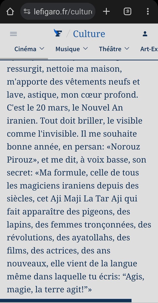 شاید برای شما هم جالب باشد که این فرضیه از دل گفتگوی نهال تجدد با گلشیفته فراهانی درآمده، آن هم در مصاحبهای که انگار در مجیز زبان فرانسوی برگزار شده است و به شیوه «شاعرانه»ای میخواهد چیزهایی را به هم ربط دهد و به همدیگر بخوراند تا مخاطب فرانسوی کیف کند. lefigaro.fr/culture/2013/0…