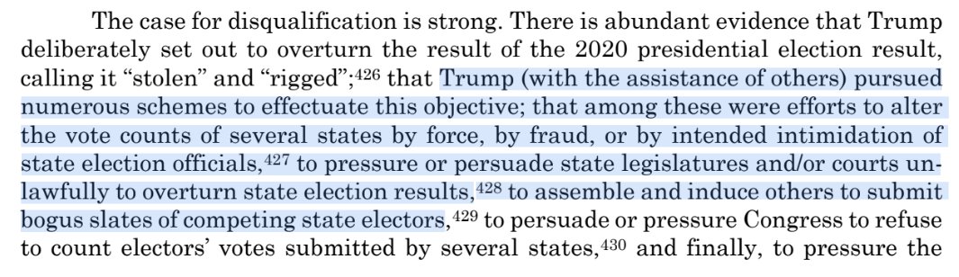 Insurrection-deniers should say (1) whether the CO ruling’s description of the threshold Q is a reasonable one; and if so, (2) whether Trump’s conduct meets it. If your answers are no, what *would* be disqualifying? Or is the claim that Disqualification is a dead letter? 10/