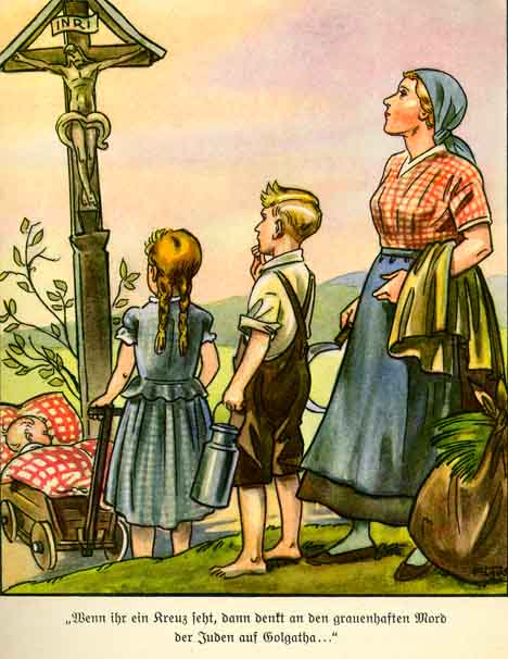 ‘When you see a cross, think of the gruesome act of murder committed by the Jews on Golgotha.’