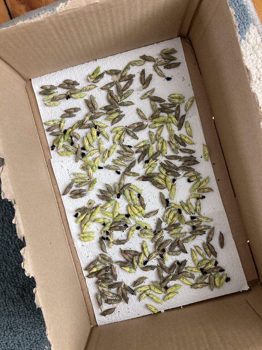Twitter you know how I always rescue caterpillars from the park nettles before the council can kill them? WELL. I have been busy. Behold 265 peacock butterfly chrysalises 🤪 https://t.co/KPahPptiU7
