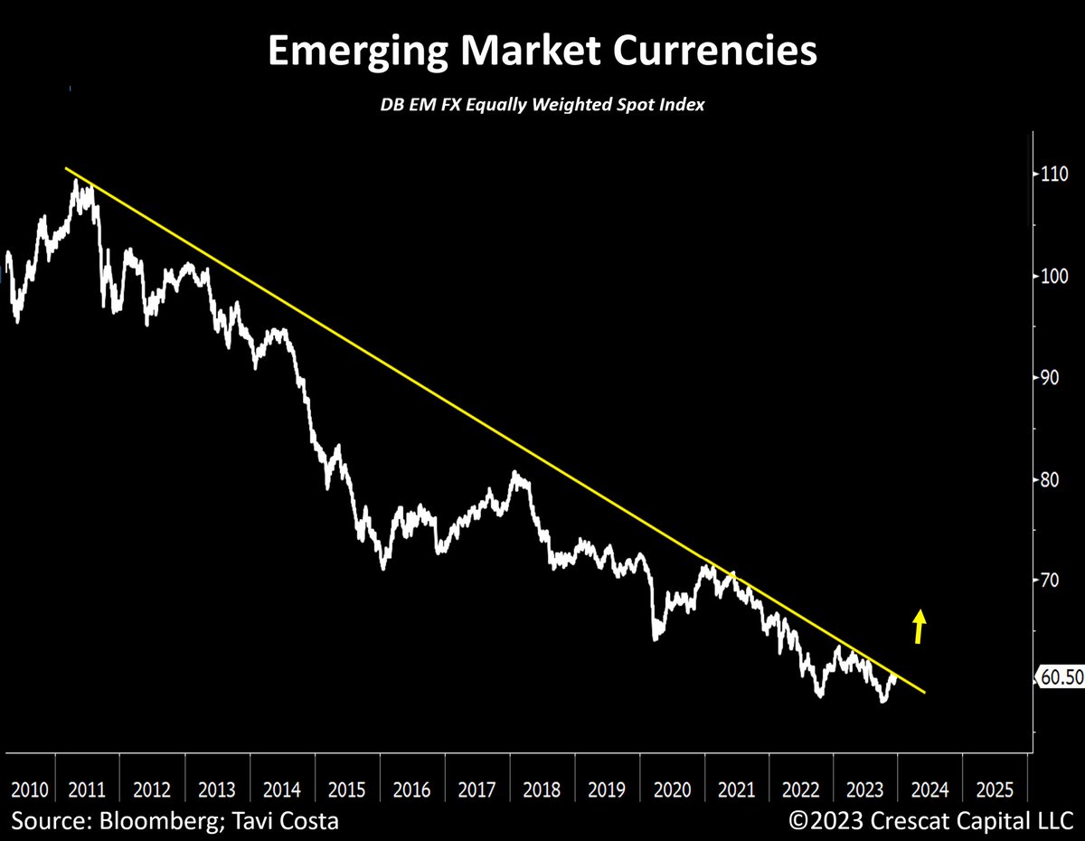 Emerging market currencies, after a prolonged decline, are on the brink of a significant breakout, indicating the potential start of a more favorable era for these economies, particularly the ones that are rich in natural resources.