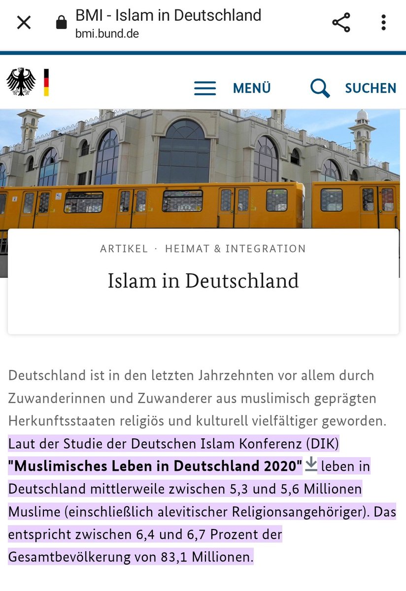 Der Bevölkerungsanteil von Muslimen in D beträgt ca. 6,5 %.
