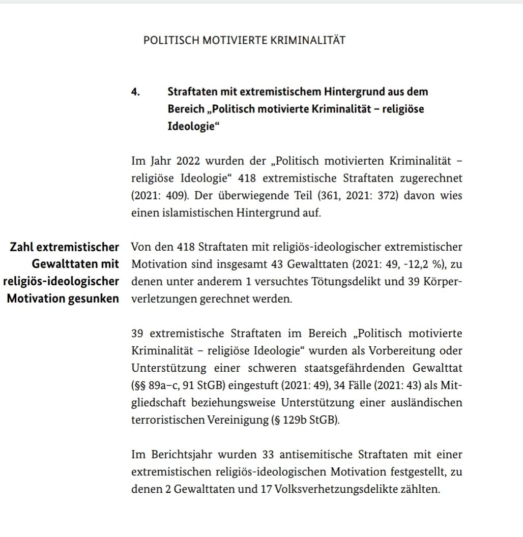 sind die absoluten Zahlen so gering, dass keine prozentuale Anrechnung sinnvoll wäre: 12 religiös-ideologisch motivierte Taten auf ca. 5,5 Mio Muslime.