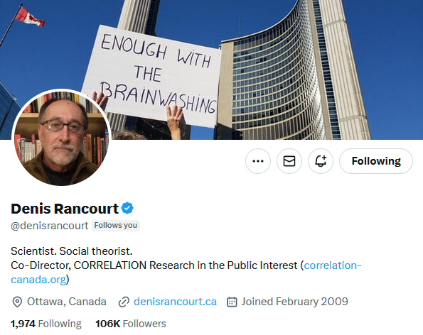 #2 Denis Rancourt (@denisrancourt) is a Canadian scientist who, despite all the pressure, has not allowed himself to be silenced. His analyses of excess mortality due to vaccines are remarkable. For this reason, he is probably also shadowbanned.