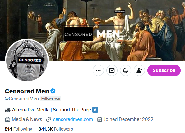 #6 Censored Men (@CensoredMen) - here the name says it all. Why the algorithm hides the tweets of this account from me remains a mystery. The content is the opposite of what the mainstream media reports, which definitely broadens the horizon.