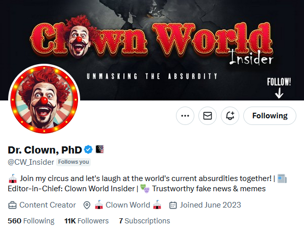 #8 The Canadian Clown (@CW_Insider, not Justin Trudeau) may not have a large account, but is repeatedly censored and shadow-banned, likely due to his anti-woke original content memes. Definitely a must-follow for 2024.