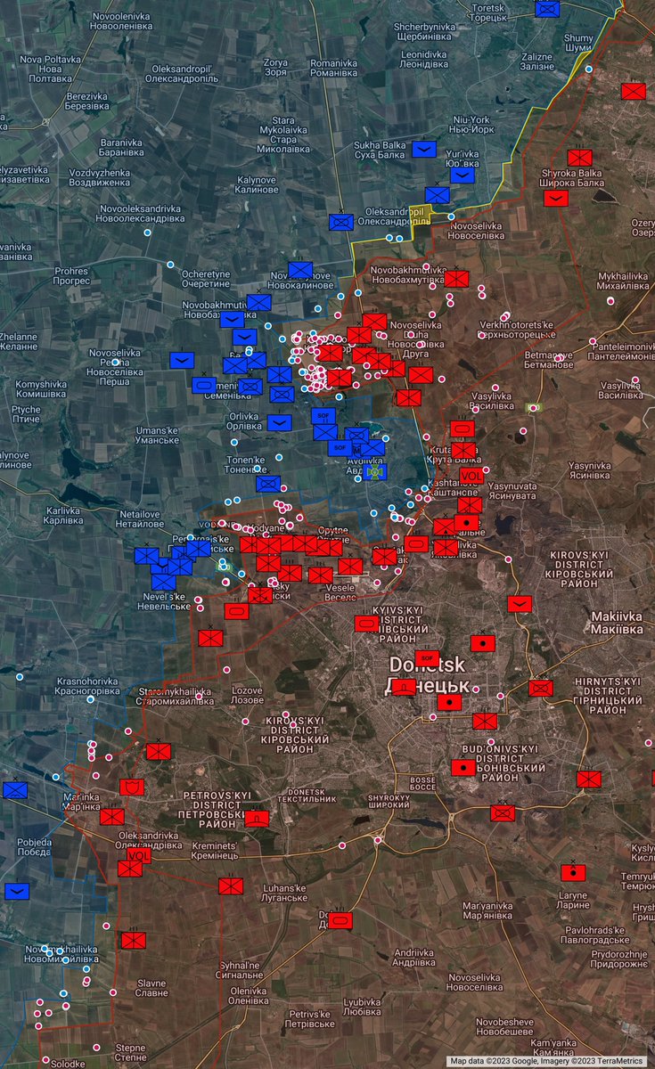 Highlights: Russian forces advance to the outskirts of Avdiivka Coke plant in the north, and within 300 meters of the Memorial to Defenders of Avdiivka industral zone in the south